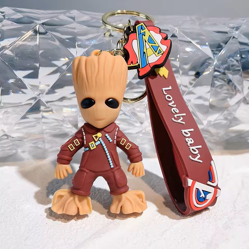 🌿 Groot 3D Silicone Keychain with Bag Charm & Strap